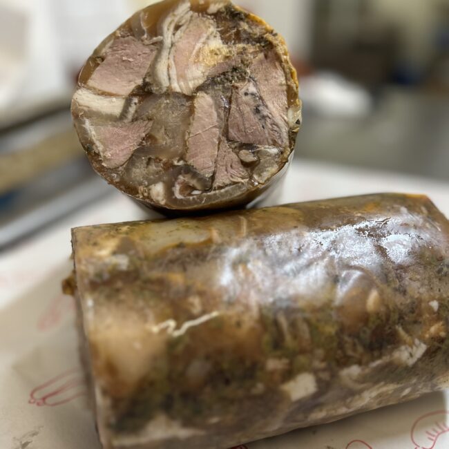 So far I’ve tried the sausages, blood sausages, bacon, head cheese, and cracklings, and everything has been excellent.